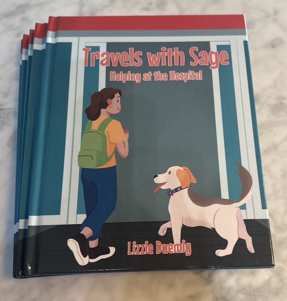 Just before this video clip started, this cute little guy grabbed his special “pawed” copy of his book and called his sisters into the room for bedtime book reading. Then he said, “I’m about to read a story about my friend Sage that Miss Lizzie wrote…”